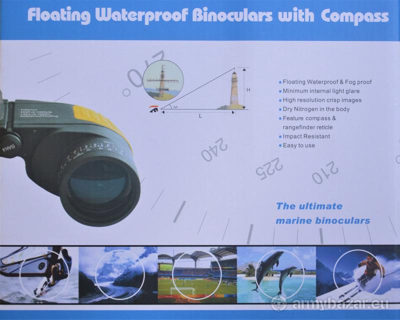 Opis: NOWA Lornetka z kompasem KANDAR 10x50 Dalmierz artyleryjski. Idealny sprzęt w teren dla turystów, survivalowców, myśliwych, żeglarzy... Wodoodporna. Posiada pasek utrzymujący ją na wodzie. W komplecie futerał z paskiem na ramię ale także z możliwością noszenia go na pasku. Instrukcja obsługi w języku angielskim. Podświetlany kompas. Skala pozwalająca określić odległość obserwowanego obiektu. Odbiór osobisty Warszawa/Piaseczno lub wysyłka po wpłacie.