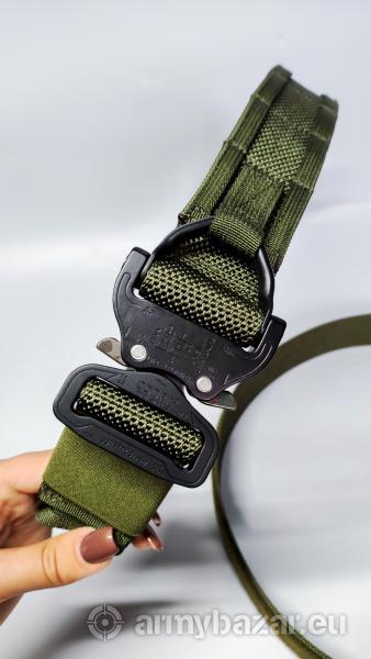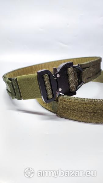 Opis: Pasy wykonuje pod konkretny obwód. Pas taktyczny z oryginalną klamrą AustriAlpin D-RING. Pas posiada regulację, dzięki czemu będzie służył przez wiele lat, niezależnie od tego, czy w obwodzie przybędzie czy ubędzie centymetrów! :) Pasy wykonuję z najlepszych, dostępnych materiałów na rynku: - klamra AustriAlpin D-RING COBRA® PRO STYLE 18kN w kolorze czarnym, - polipropylenowe taśmy PASAMON , - rzep Velcro® , - nici SERAFIL, Kolor : RANGER GREEN lub CZARNY Pas składa się z dwóch części: 1. MIĘKKI regulowany pas: taśma + rzep pętelka. Pas należy przełożyć przez szlufki spodni. Szerokość 44mm 2. SZTYWNY regulowany pas: podwójna taśma + rzep haczyk + naszyty system molle + klamr
